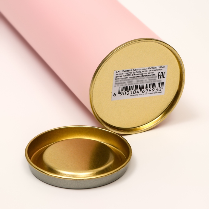 Тубус 63х350 мм (330 мм внутр. высота), под футболку, розовая, картон, металлическая крышка
