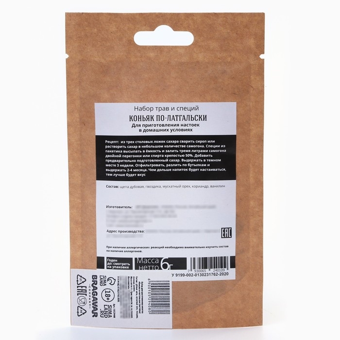 Набор трав и специй «Коньяк по-латгальски» для приготовления алкоголя, 6 г.