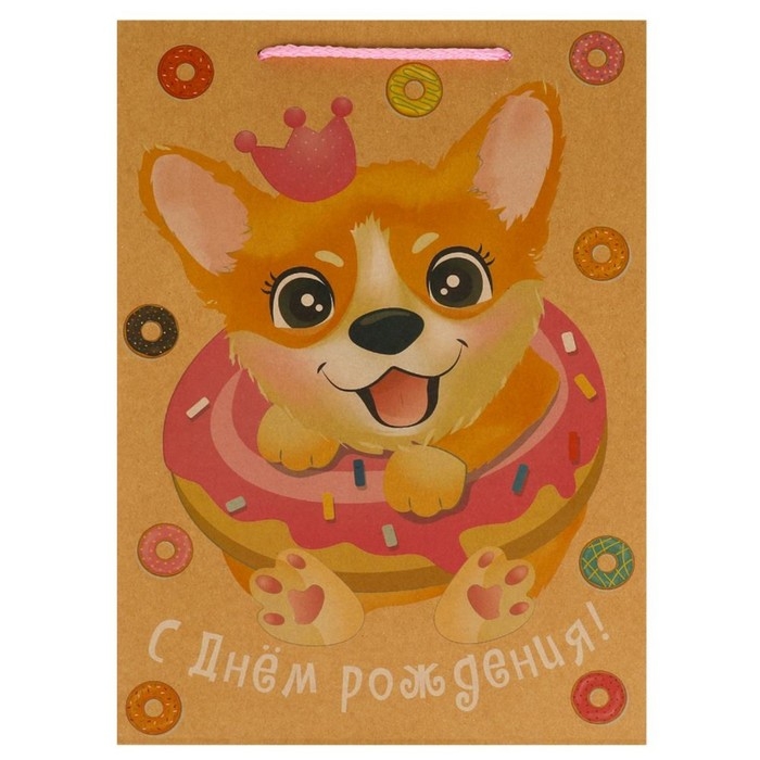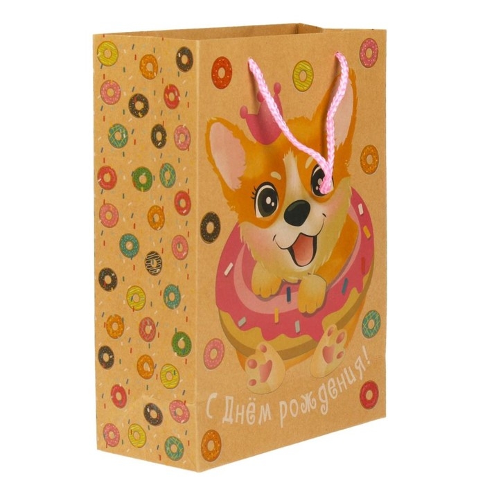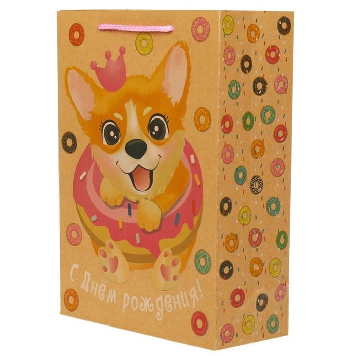 Пакет подарочный крафт M-L, 22 × 31 × 10 см
