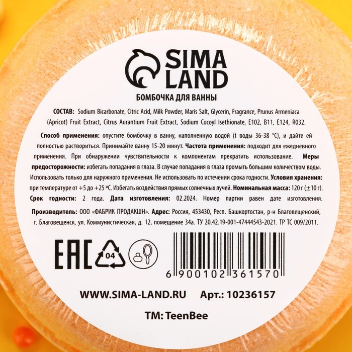 Бомбочка для ванны, 120 г, аромат дыни, TeenBee