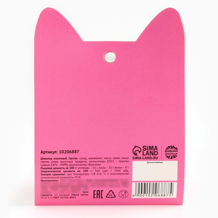 Состав: сахар, эквивалент масла какао, какао тёртое, сухие молочные продукты, эмульгаторы (Е322 - лецитин соевый, Е476 - PGPR), ароматизатор "Ванилин".