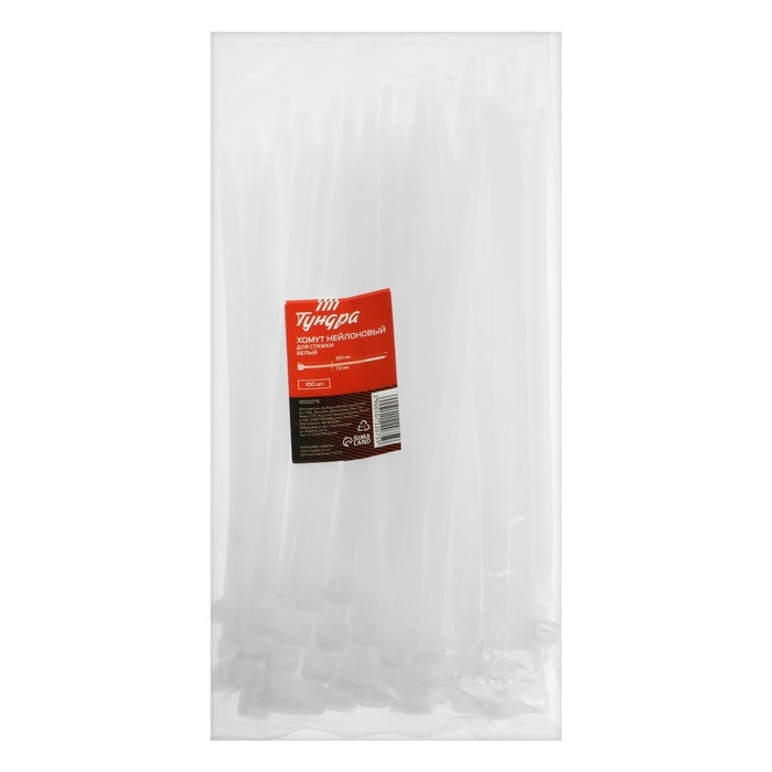 Хомут нейлоновый ТУНДРА krep для стяжки, 7.6х250 мм, белый, в упаковке 100 шт.