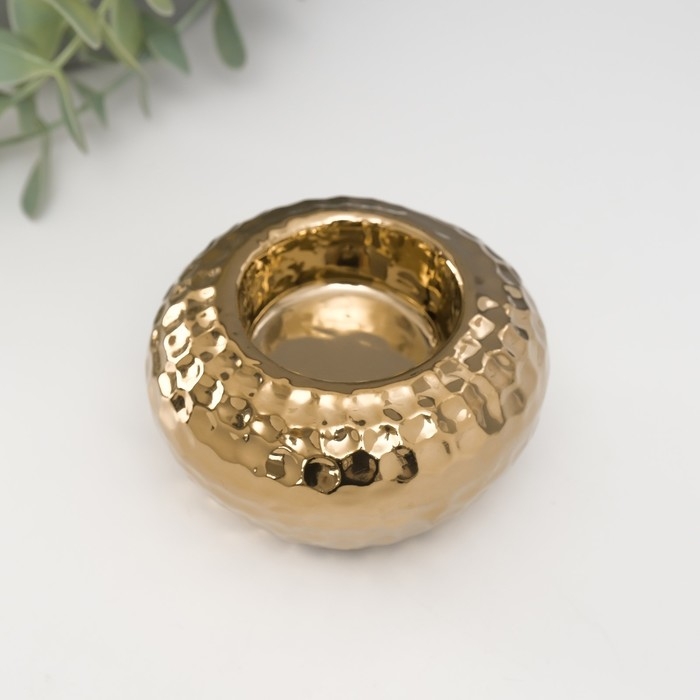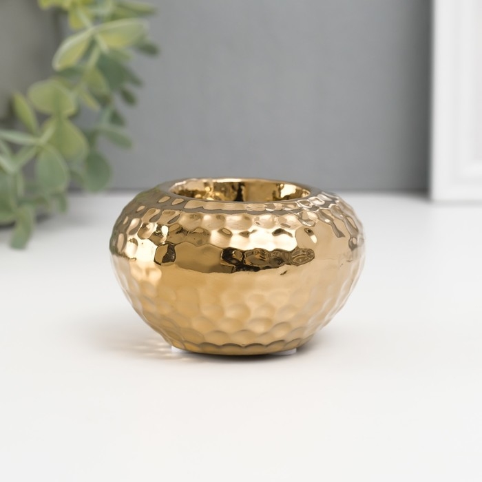Подсвечник керамика на 1 свечу "Капли дождя на шаре" d=4 см золото 8х8х5 см