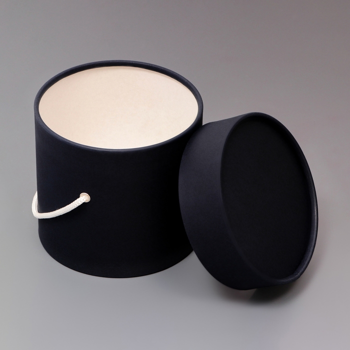 Подарочная коробка, круглая, чёрная,с шнурком, 12 х 12 см