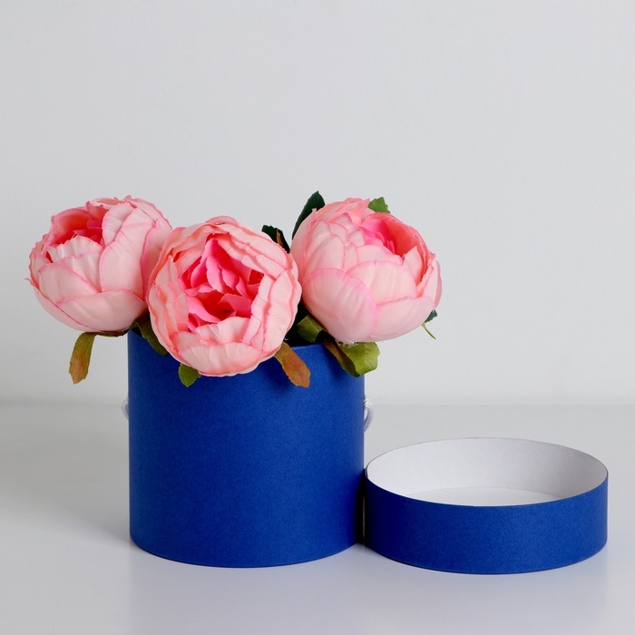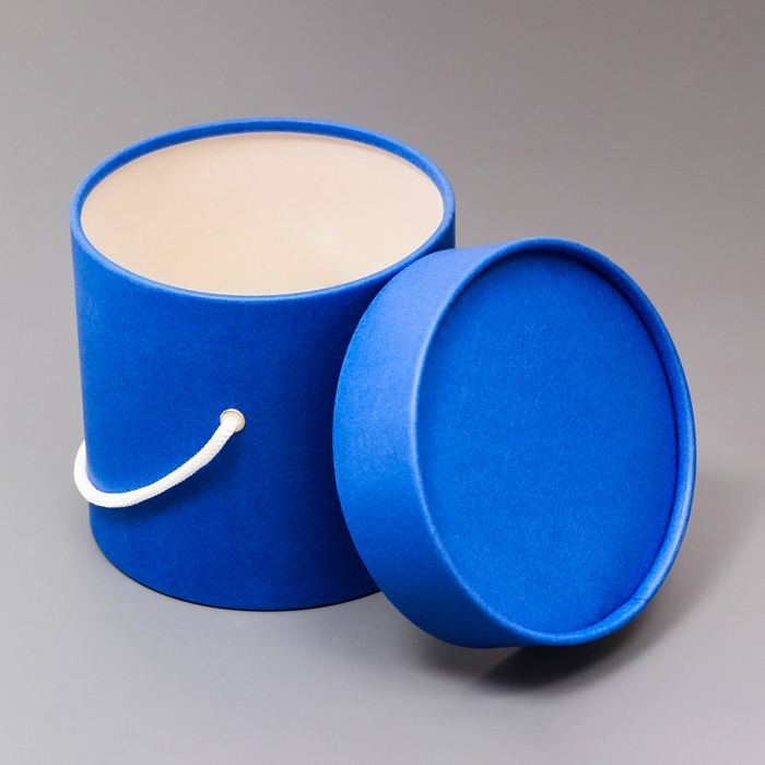 Подарочная коробка, круглая, синяя,с шнурком, 12 х 12 см