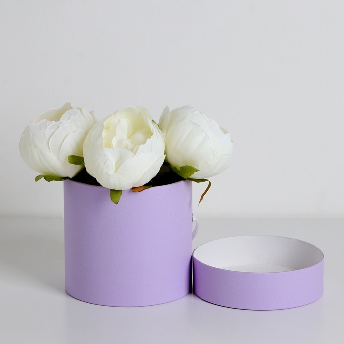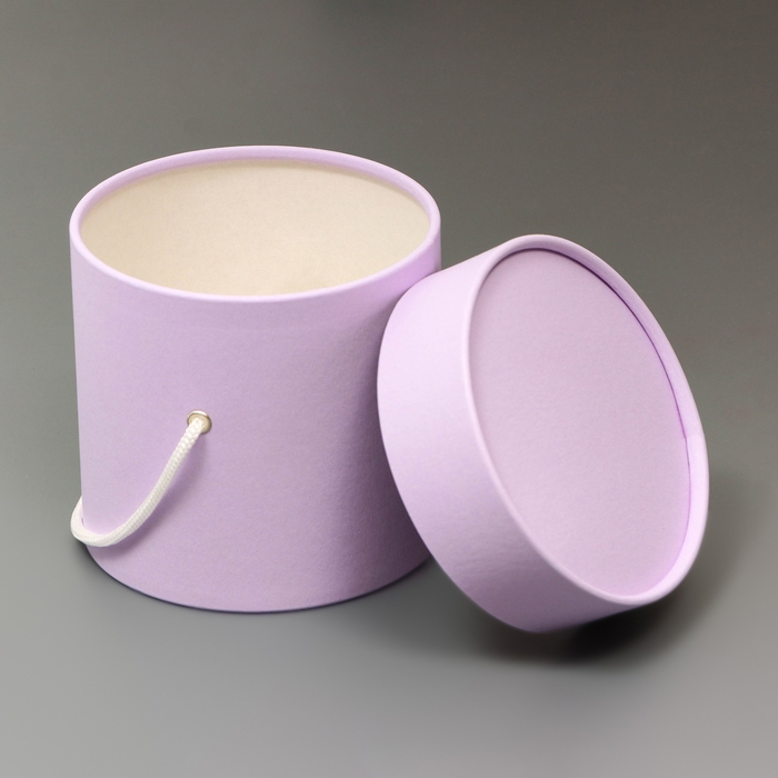 Подарочная коробка, круглая, лавандовая,с шнурком, 12 х 12 см