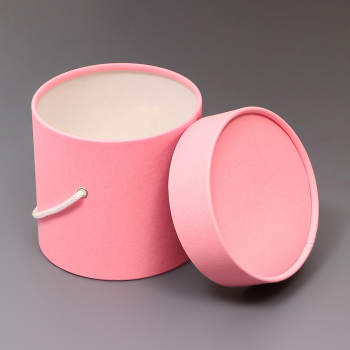 Подарочная коробка, круглая, розовая,с шнурком, 12 х 12 см