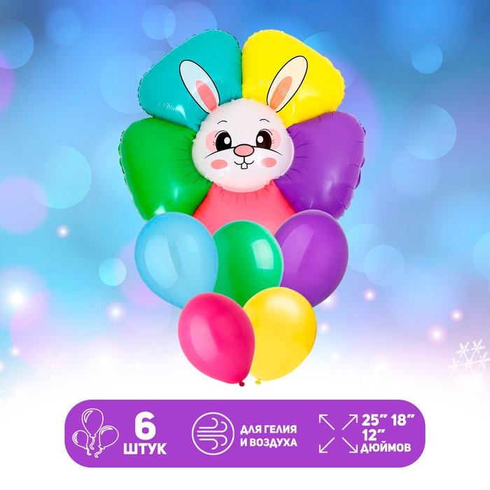 Набор шаров «Зайка в цветочке», латекс, полимер, 6 шт.