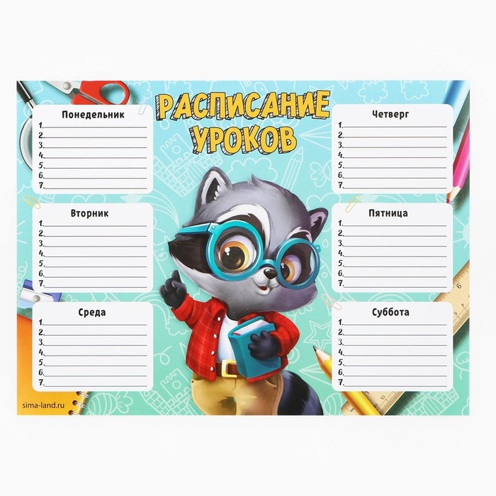Закладка, Карандаши, Ластик, Наклейки, Ножницы, Расписание, Ручка, Счётные палочки, Тетрадь, Цветная бумага