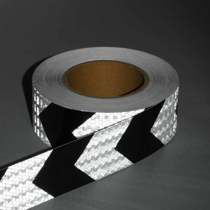Светоотражающая лента, самоклеящаяся, бело-черная, 5 см х 25 м