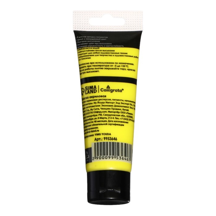 Краска акриловая матовая в тубе 75мл CALLIGRATA, КМ027, Желтый светлый, пантон 394С