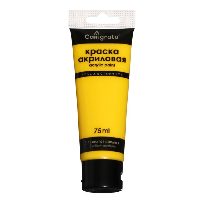 Краска акриловая матовая в тубе 75мл CALLIGRATA, КМ014, Желтая средняя, пантон 116С