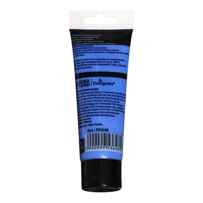 Краска акриловая матовая в тубе 75мл CALLIGRATA, КМ034, Кобальт синий, пантон 2726С