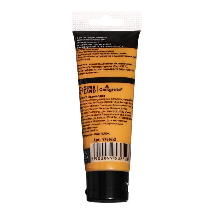 Краска акриловая матовая в тубе 75мл CALLIGRATA, КМ003, Охра желтая, пантон 131С
