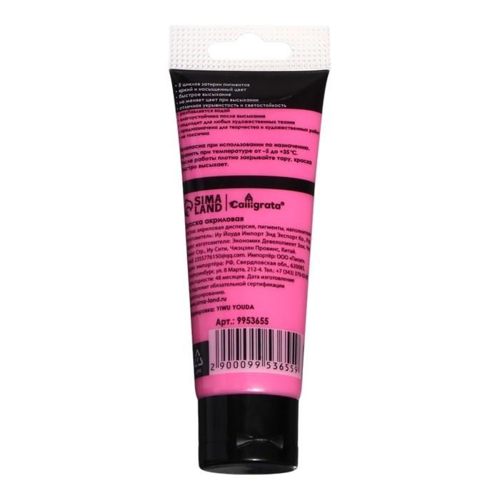 Краска акриловая матовая в тубе 75мл CALLIGRATA, КМ039, Розовая светлая, пантон 218С