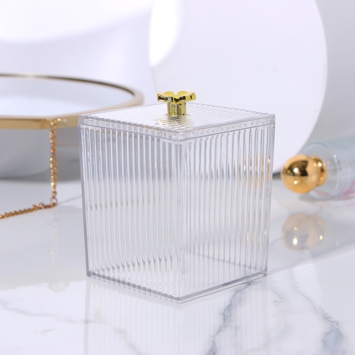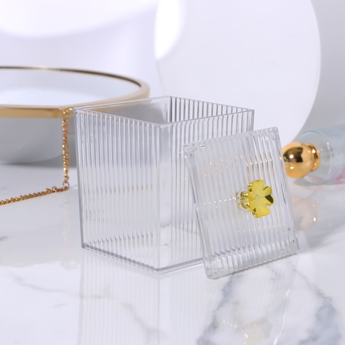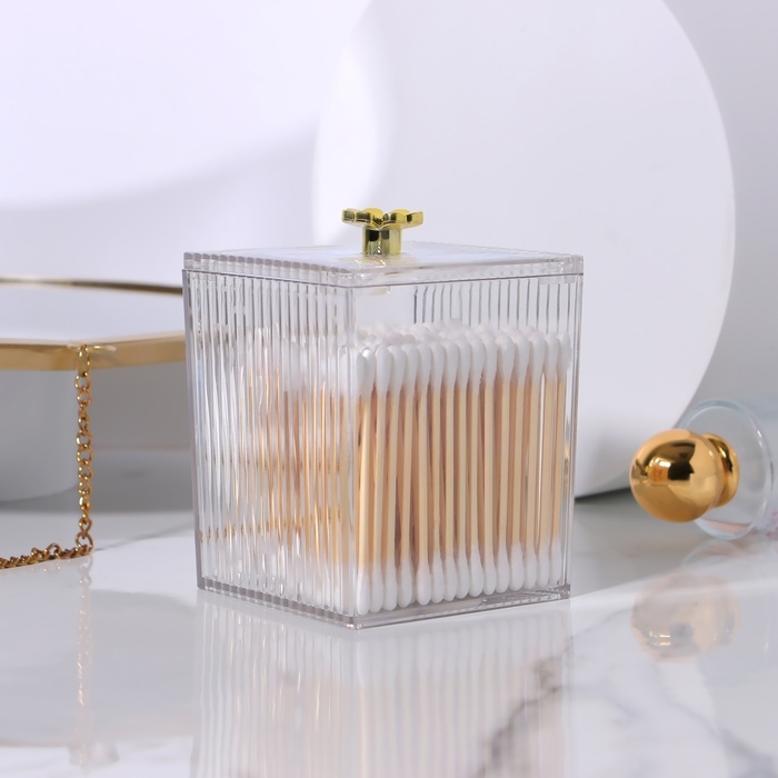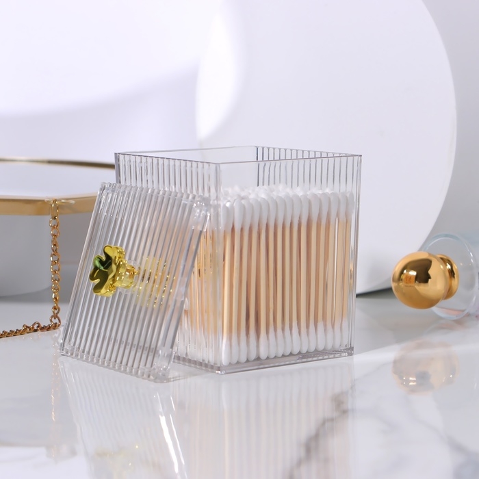 Органайзер для ватных палочек «FLOWER», с крышкой, 11 × 8,5 × 8,5 см, цвет прозрачный/золотистый