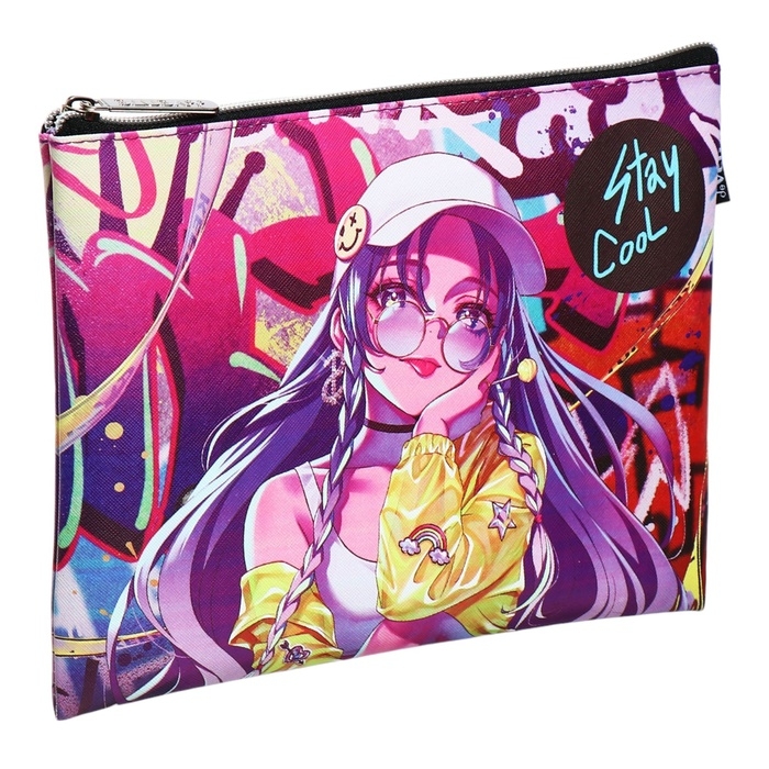 Папка для тетрадей А5, 245 х 200 х 10 мм, молния сверху, кож.зам, de VENTE Stay Cool, для девочек