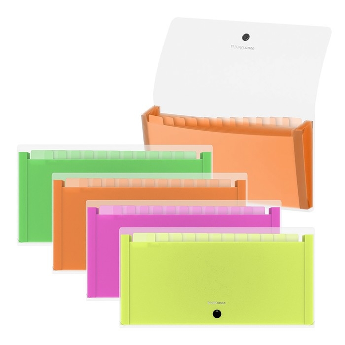 Папка-картотека А4 на кнопке 13 отделений, ErichKrause, Matt Neon, пластик прозрачный, микс