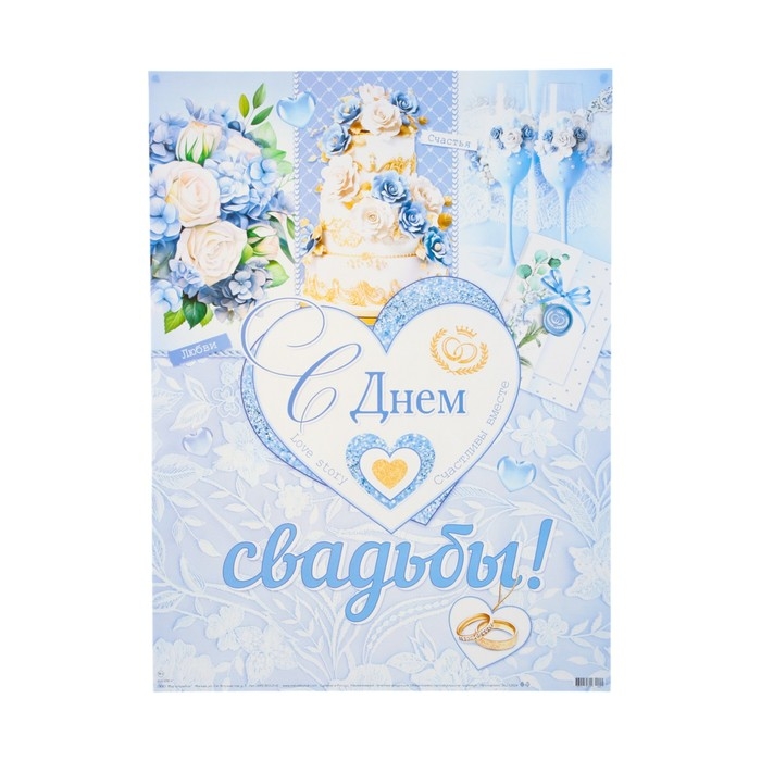 Плакат "С Днём Свадьбы! Счастливы вместе!" торт, 44,5 х 60 см