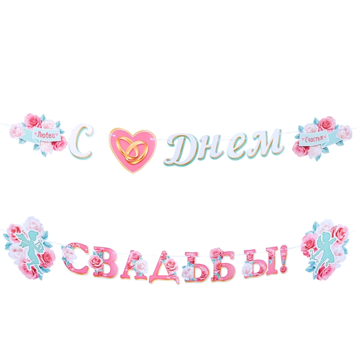 Гирлянда "Совет да любовь! С Днём Свадьбы!" купидон, 420 см