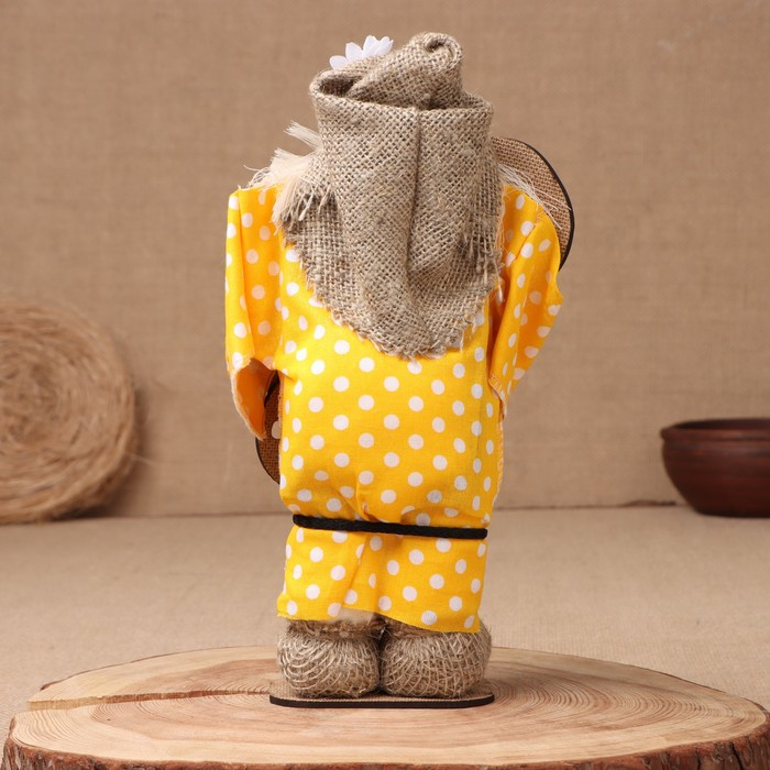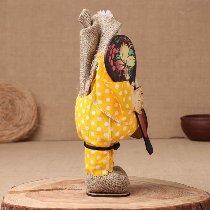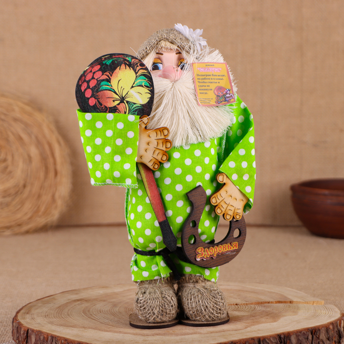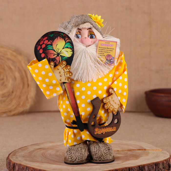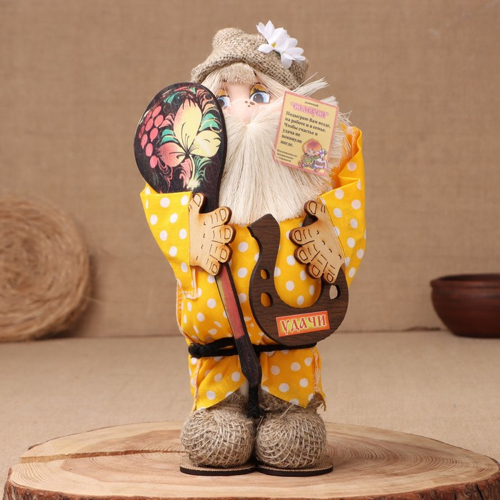 Оберег-домовой "Славуся в льняном колпаке, с ложкой и подковой", микс