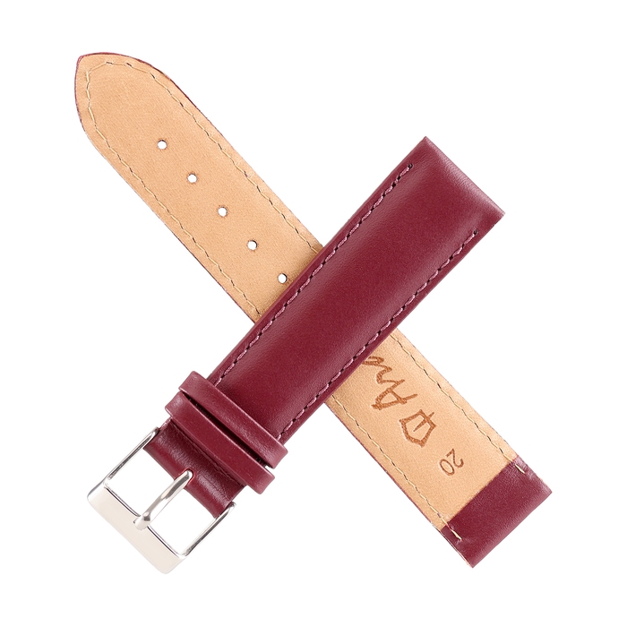 Ремешок для часов, 20 мм, запряжник 75 мм, горт 115 мм, натуральная кожа, бордовый