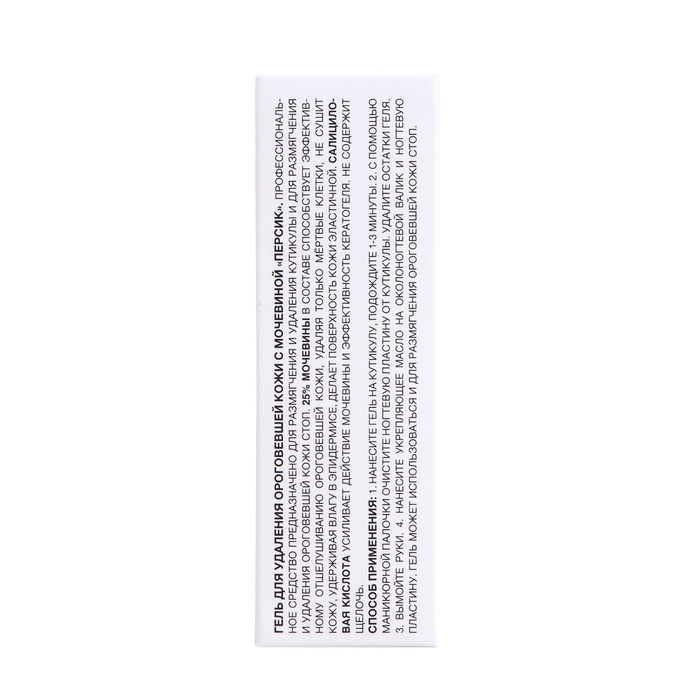 Профессиональное средство предназначено для размягчения и удаления кутикулы и для размягчения и удаления ороговевшей кожи стоп. 25% мочевины в составе способствует эффективному отшелушиванию ороговевшей кожи, удаляя только мёртвые клетки, не сушит кожу, удерживая влагу в эпидермисе, делает поверхность кожи эластичной. Салициловая кислота усиливает действие мочевины и эффективность кератогеля. Не содержит щелочь.