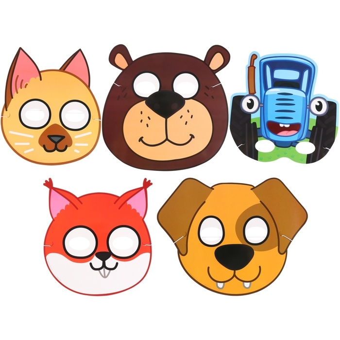 Набор карнавальных масок Синий трактор 5 шт.