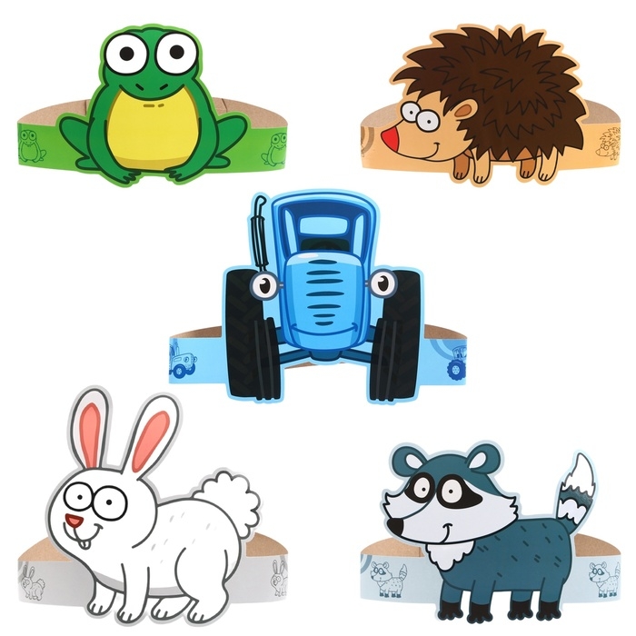 Набор карнавальных масок Зверята, Синий трактор 5 шт.