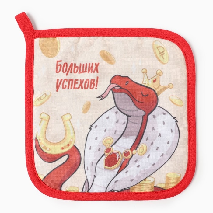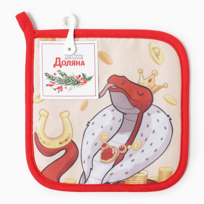 Новый год. Символ года. Змея. Прихватка Доляна "Больших успехов" 17х17 см, 35% хл, 65% пэ, ватин 250 г/м2