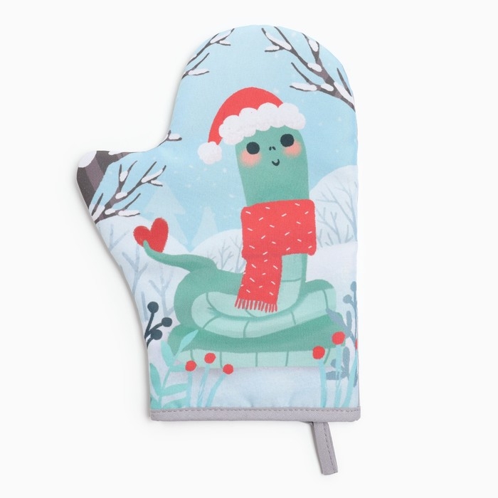 Новый год. Символ года 2025. Змея. Варежка-прихватка Доляна "Любви и тепла" 20х28 см, 35% хл, 65% пэ, ватин 250 г/м2