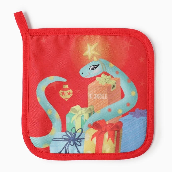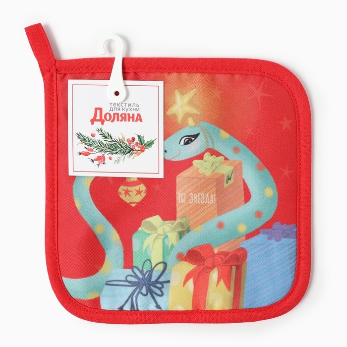 Новый год. Символ года. Змея. Прихватка Доляна "Новогодний подарок" 17х17 см, 35% хл, 65% пэ, ватин 250 г/м2