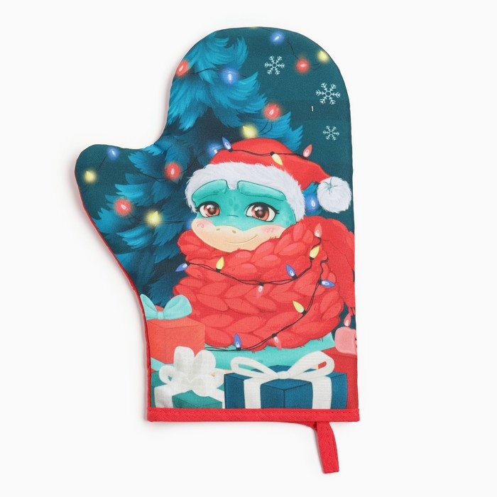 Новый год. Символ года 2025. Змея. Варежка-прихватка Доляна "Мечта исполнится" 20х28 см, 35% хл, 65% пэ, ватин 250 г/м2