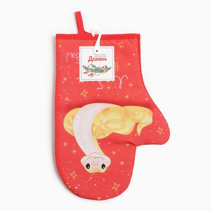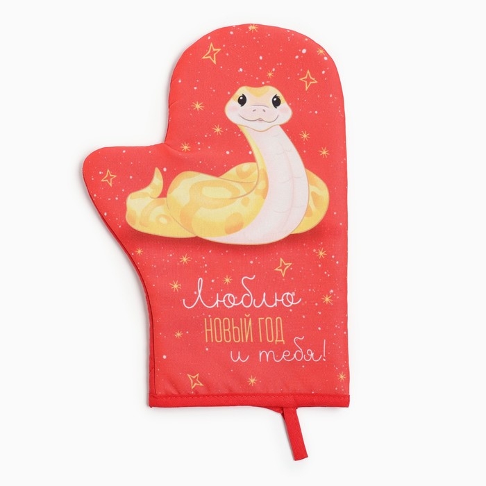 Новый год. Символ года 2025. Змея. Варежка-прихватка Доляна "Люблю Новый год" 20х28 см, 35% хл, 65% пэ, ватин 250 г/м2