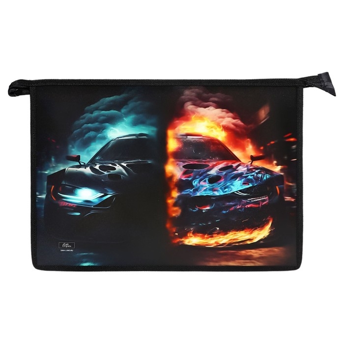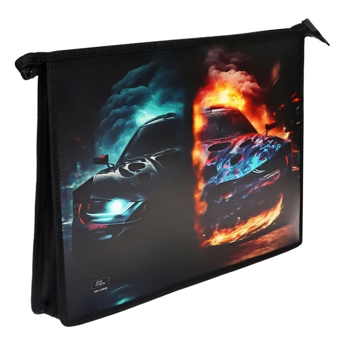 Папка для тетрадей А4, 325 х 230 х 55 мм, молния сверху, пластиковая, ПМ-А4-29 Calligrata "Тачка огонь"
