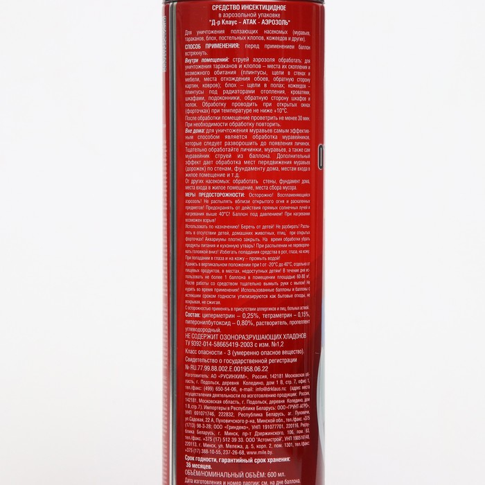 Аэрозоль Доктор Клаус от муравьев, тараканов и других ползучих насекомых, 600 мл