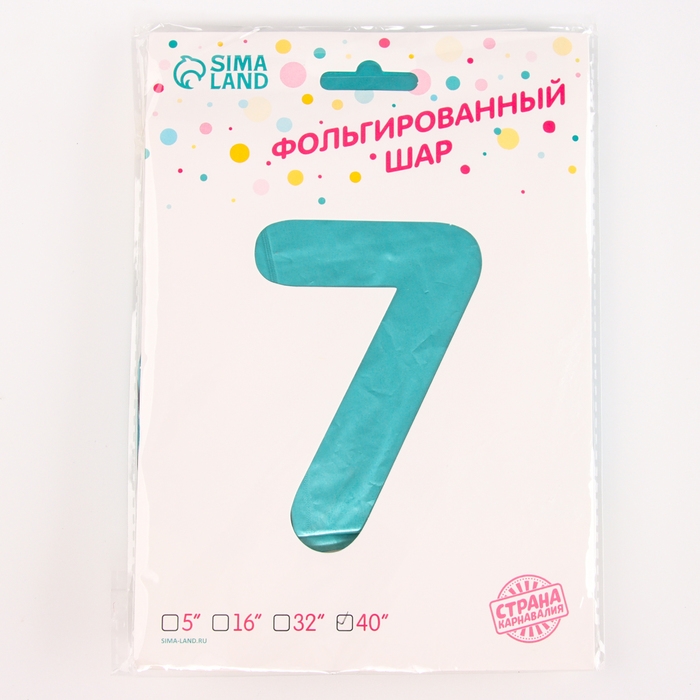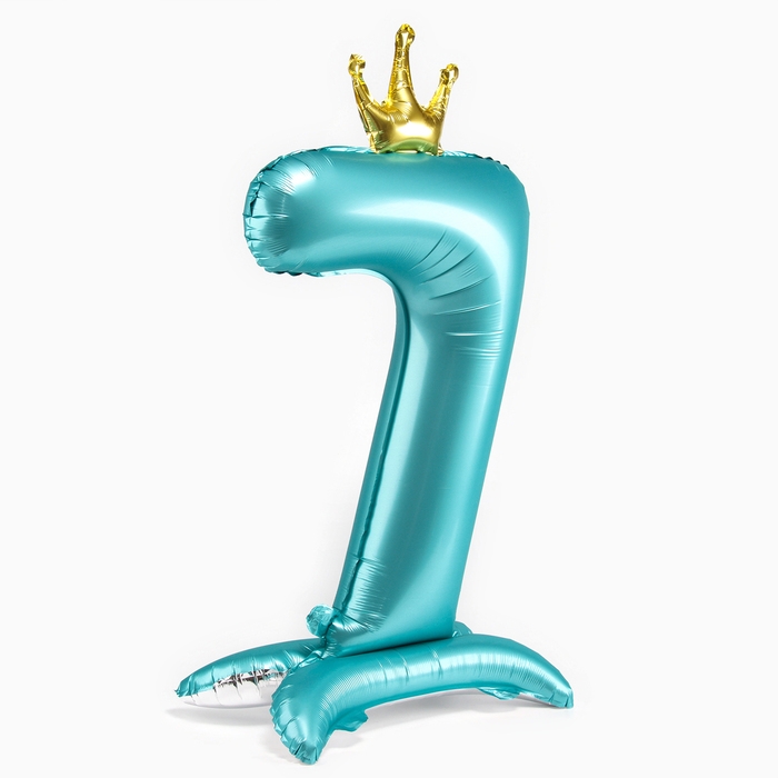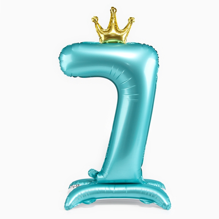 Шар фольгированный 42" «Цифра 7 с короной» на подставке, цвет голубой