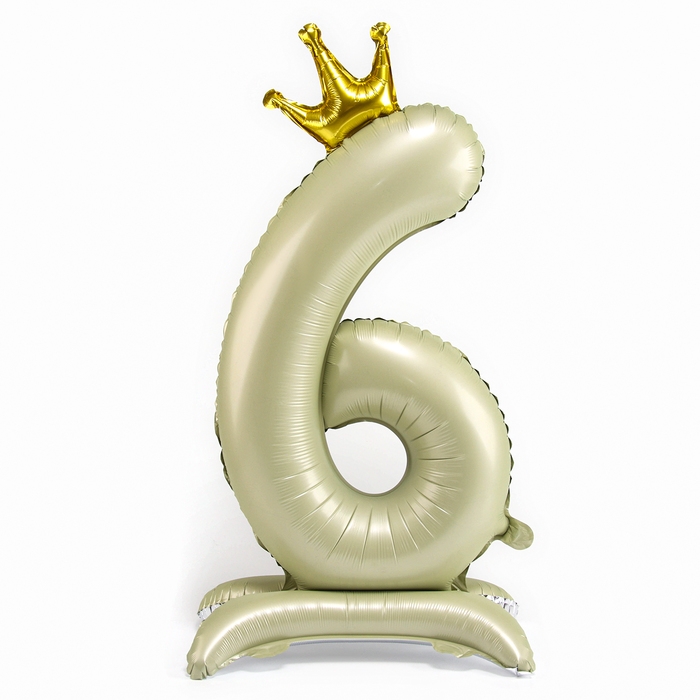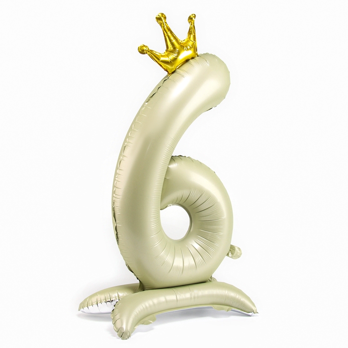 Шар фольгированный 42" «Цифра 6 с короной» на подставке, цвет взбитые сливки