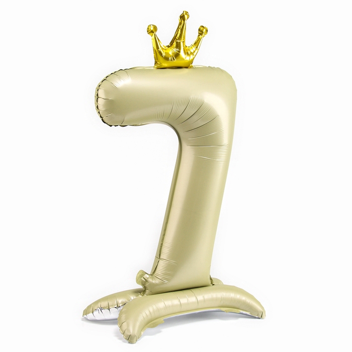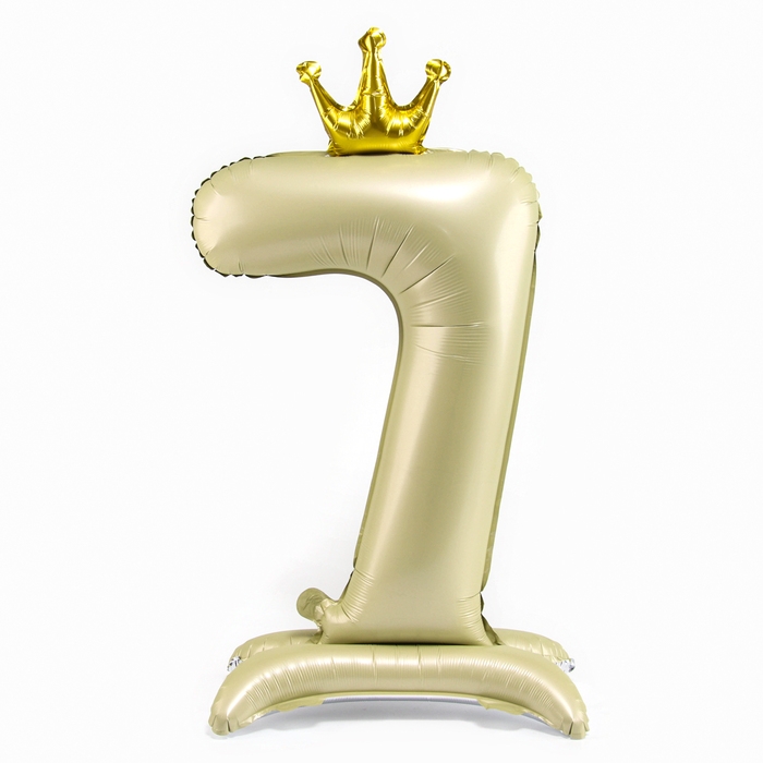 Шар фольгированный 42" «Цифра 7 с короной» на подставке, цвет взбитые сливки