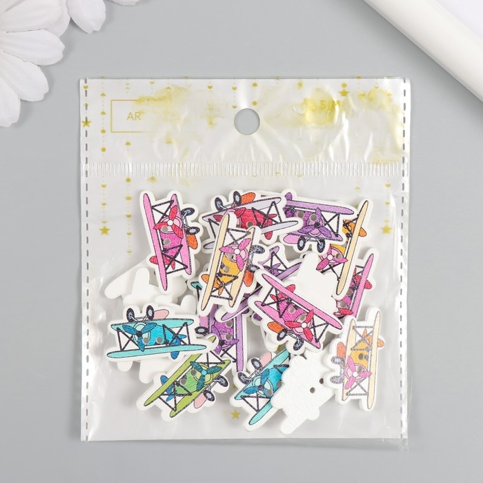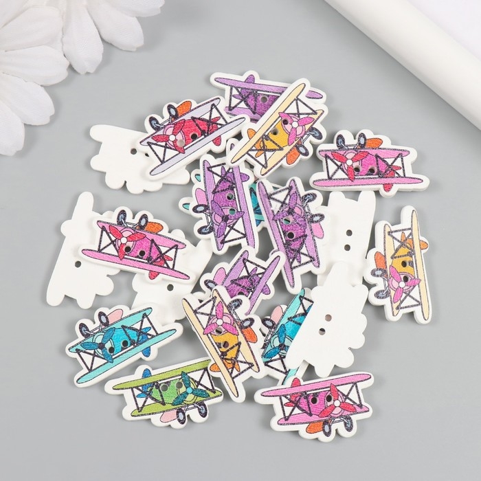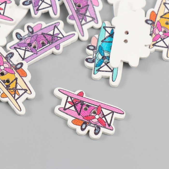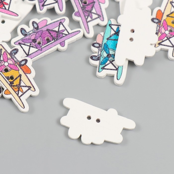 Пуговицы дерево для творчества 2 прокола "Самолет с пропеллером" набор 20 шт 3,2х1,9 см