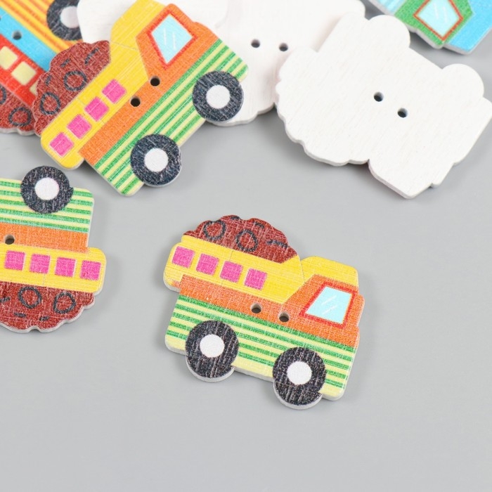 Пуговицы дерево для творчества 2 прокола "Самосвал" набор 15 шт 3,2х2,7 см