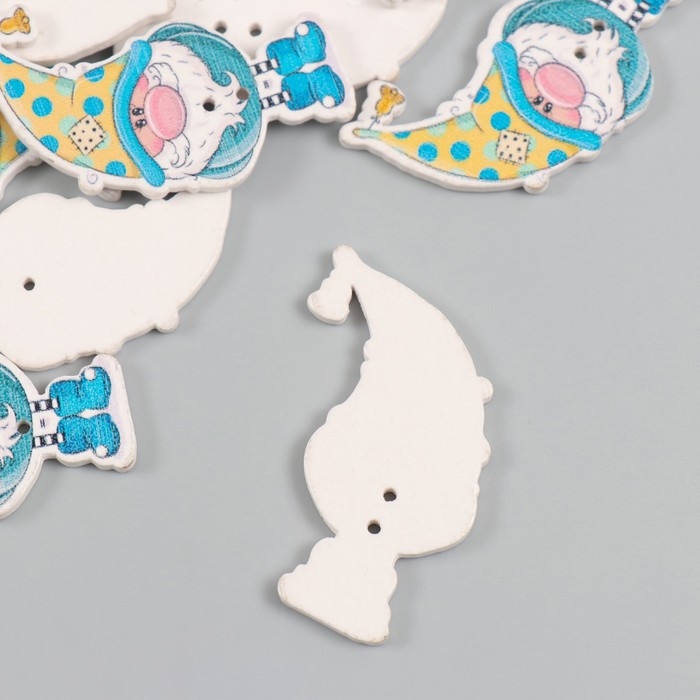 Пуговицы дерево для творчества 2 прокола "Гном в колпаке в горох" набор 15 шт 2х4 см