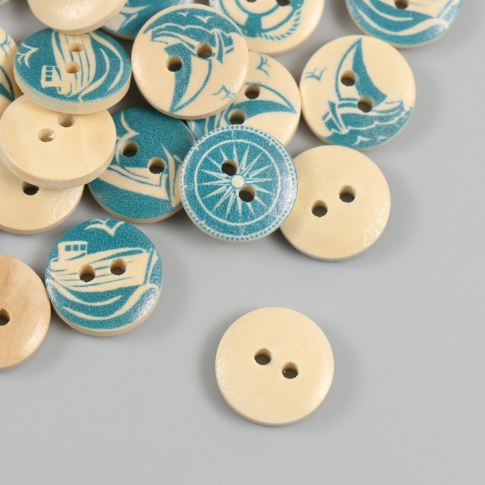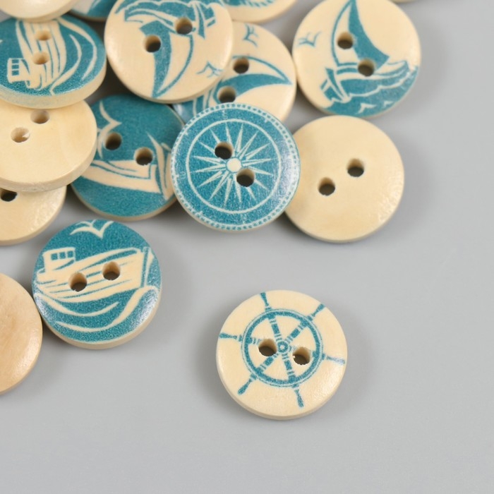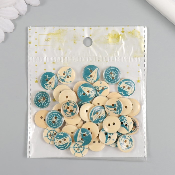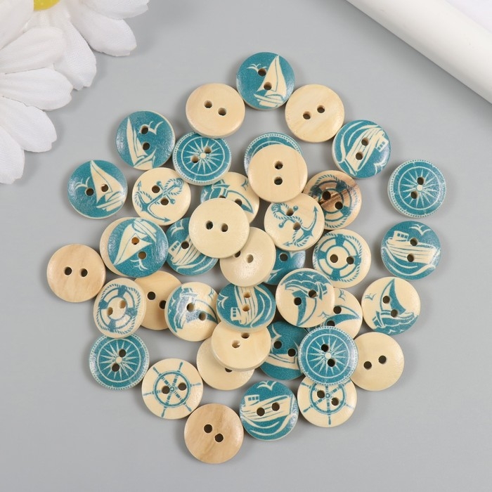 Пуговицы дерево для творчества 2 прокола "Морской прибой" набор 40 шт 1,5х1,5х0,4 см