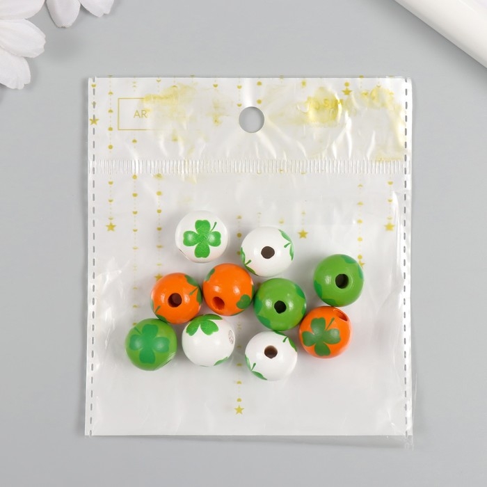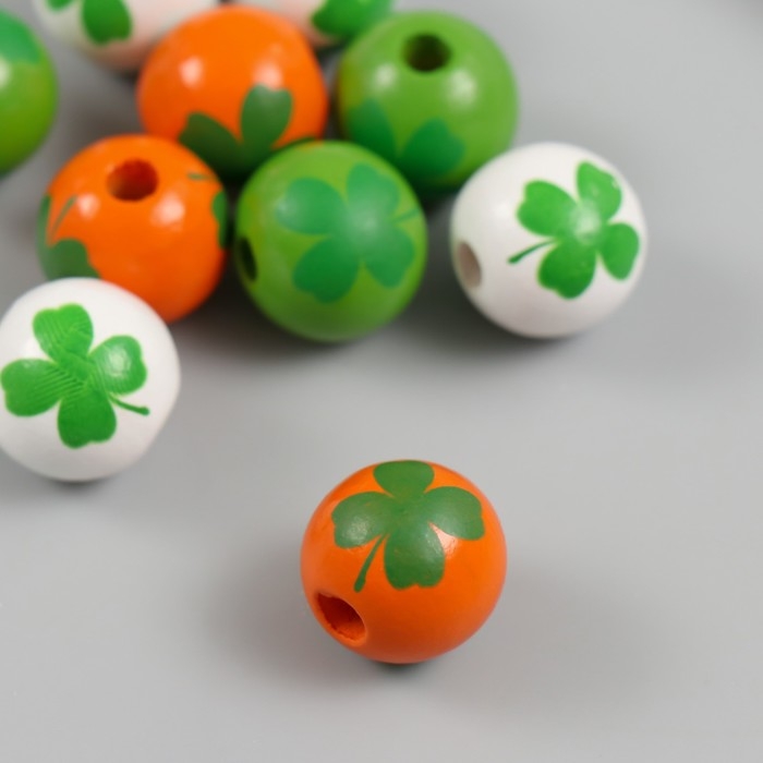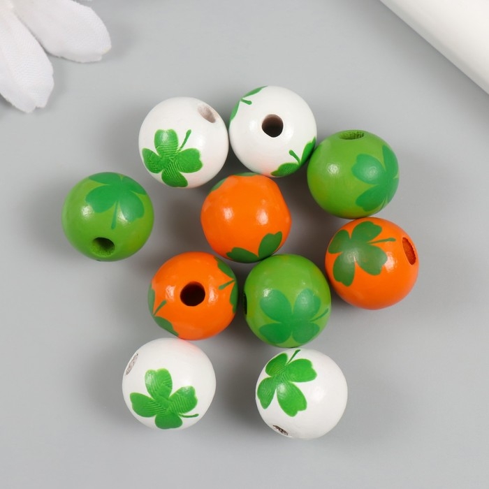 Бусины для творчества дерево "Клевер на шариках" набор 10 шт d=1,6 см
