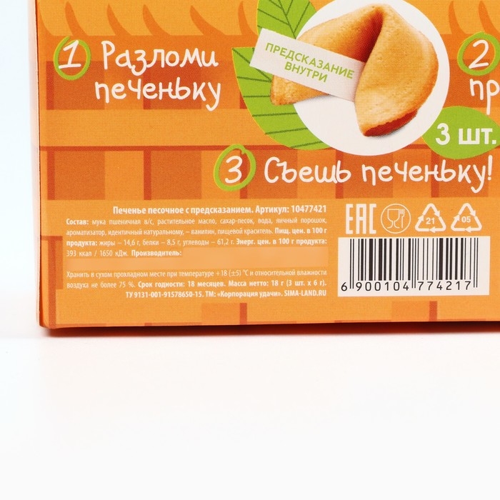 Печенье песочное с предсказаниями "Стандарт", 12 шт., 84 г