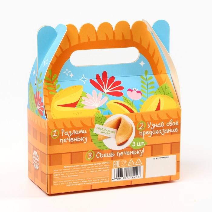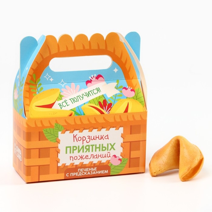 Печенье с предсказаниями «Корзинка тёплых пожеланий» в коробке с ручкой, 3 шт. х 6 г.
