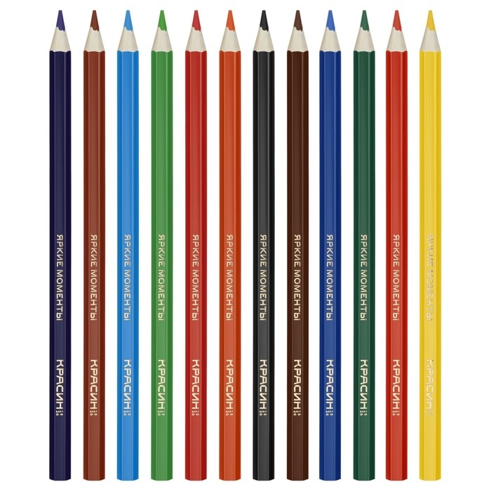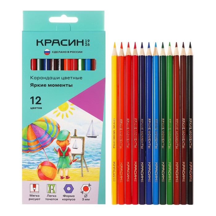 Набор карандашей цветных Красин "Яркие моменты", шестигранные, заточенные, европодвес, 12 штук