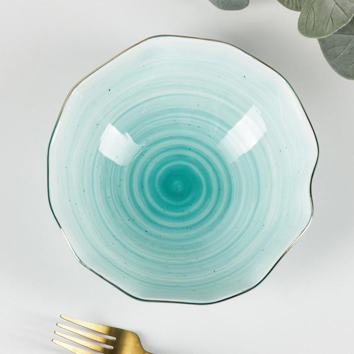 Салатник фарфоровый Доляна «Млечный путь», 700 мл, d=17,5 см, цвет бирюзовый