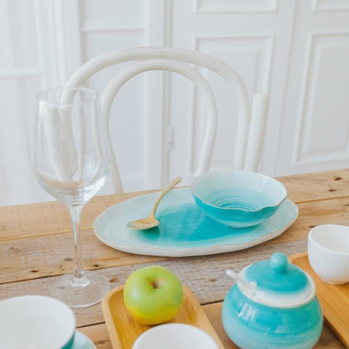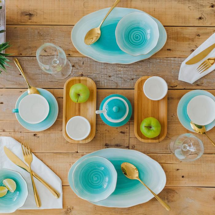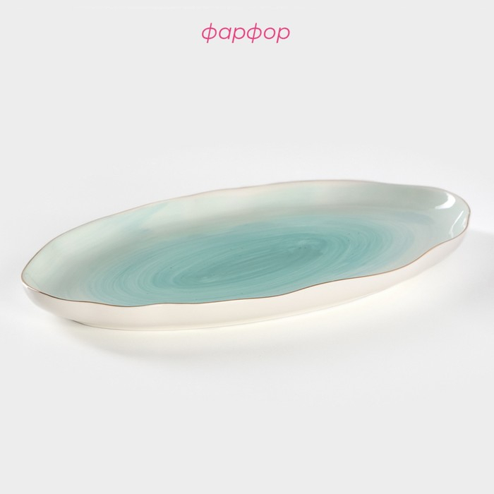 Блюдо фарфоровое Доляна «Млечный путь», 29,5×17,5 см, цвет бирюзовый