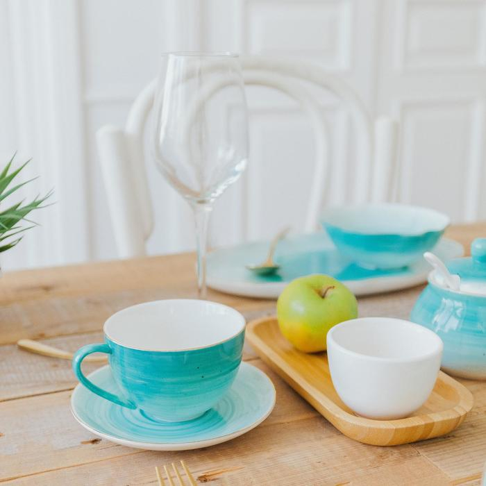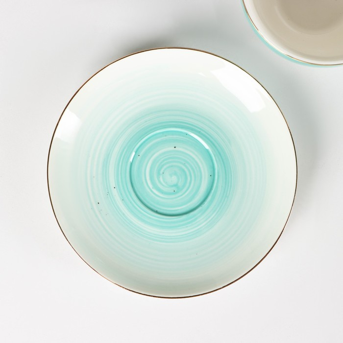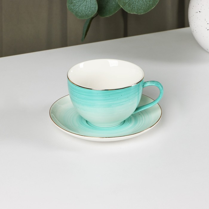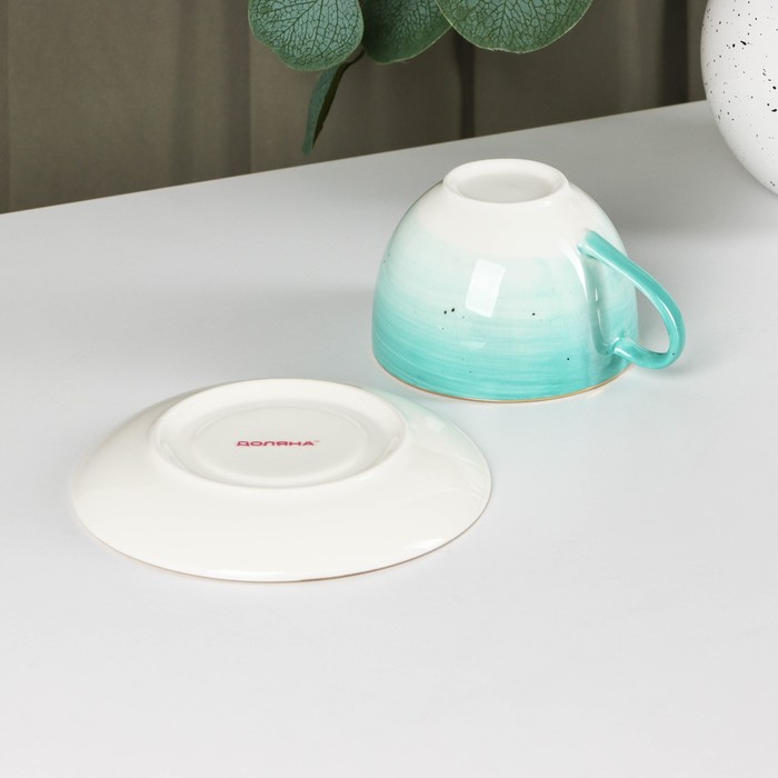 Чайная пара фарфоровая Доляна «Млечный путь», 2 предмета: чашка 220 мл, блюдце d=13,5 см, цвет бирюзовый